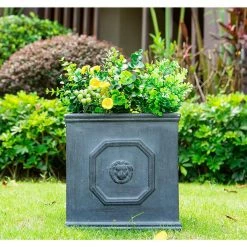 KANTE 13 in. H Square Slate Gray Lightweight Concrete/Fiberglass Indoor Outdoor Modern Planter