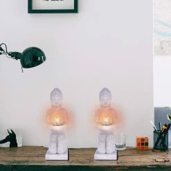 KANTE 12.8 in. H Gray Cement Buddha Garden Statue Tealight Candle Holder Ornament (2-Pack)