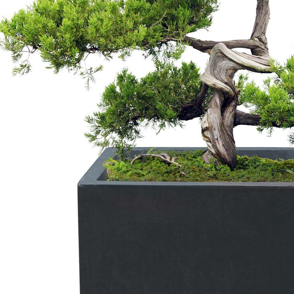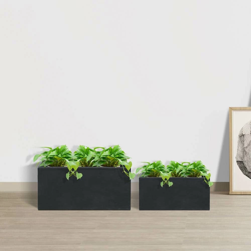 KANTE 31.4″ & 23.6″L Rectangular Charcoal Finish Lightweight Concrete Long Planters w/Drainage Hole Set of 2, Outdoor/Indoor