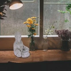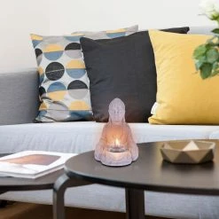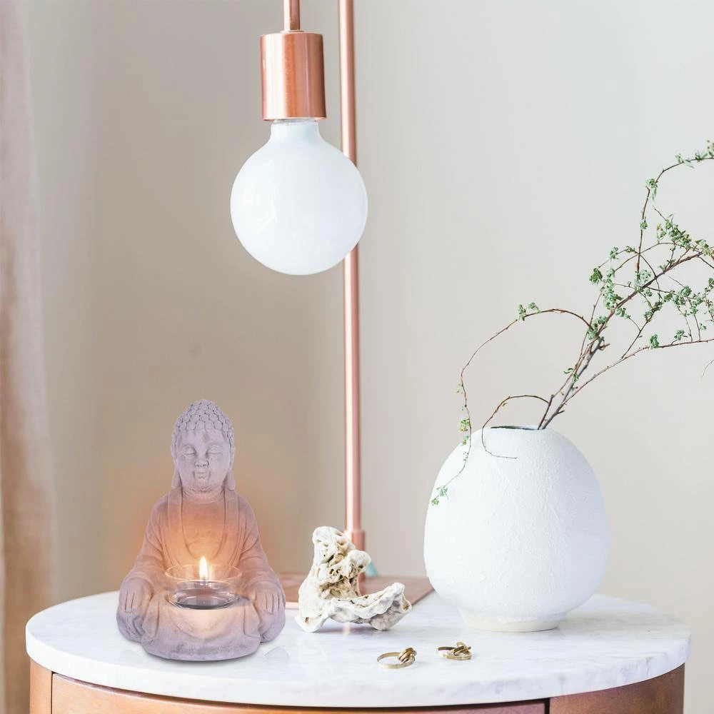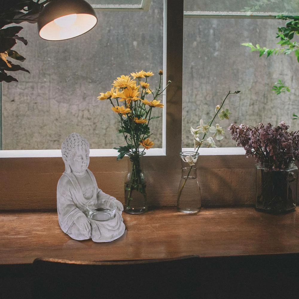 KANTE 6.5 in. H Gray Cement Sitting Buddha Garden Statue Tealight Candle Holder Ornament (2-Pack)